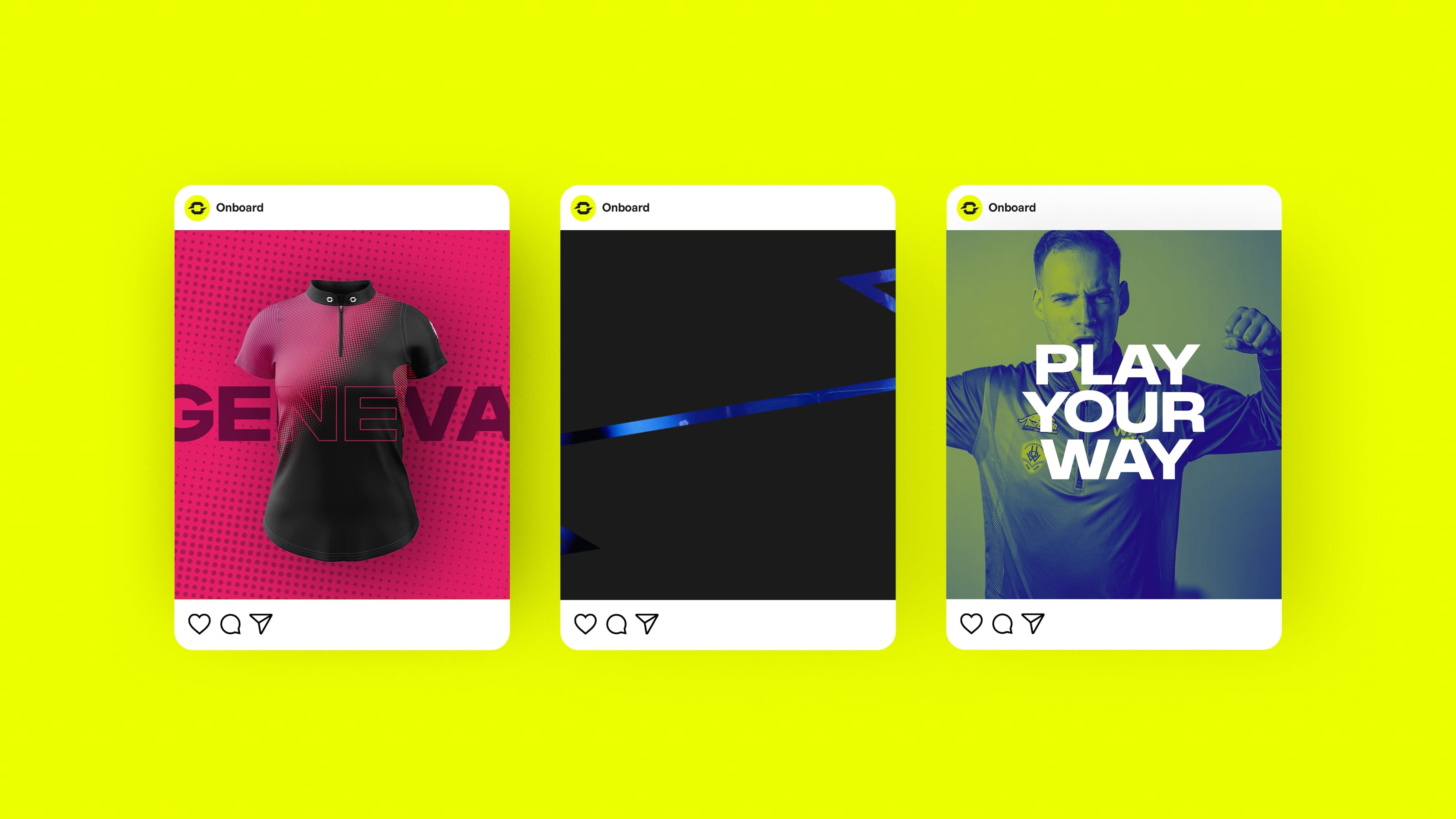 - Brand Strategy and Narrative: We developed a strategy rooted in Onboard’s goals, built around a bold, proud, and energetic tone of voice. We created a brand language that was clear, flexible, and capable of resonating across different sports and international markets.